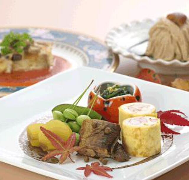 雅趣に富んだ竹の皮の上に鰻の印籠煮のほかに25種類以上の季節の味が盛り込まれています。