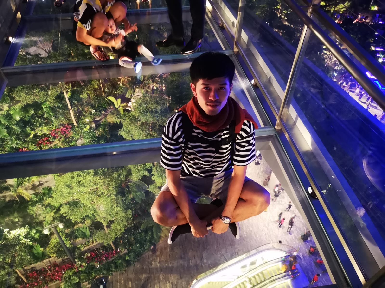床がガラスで透けています。景色も綺麗です!滝を上から見下ろすことができました。シンガポールでは初のガラスの橋だそうで、7.8mくらいの長さでした!!