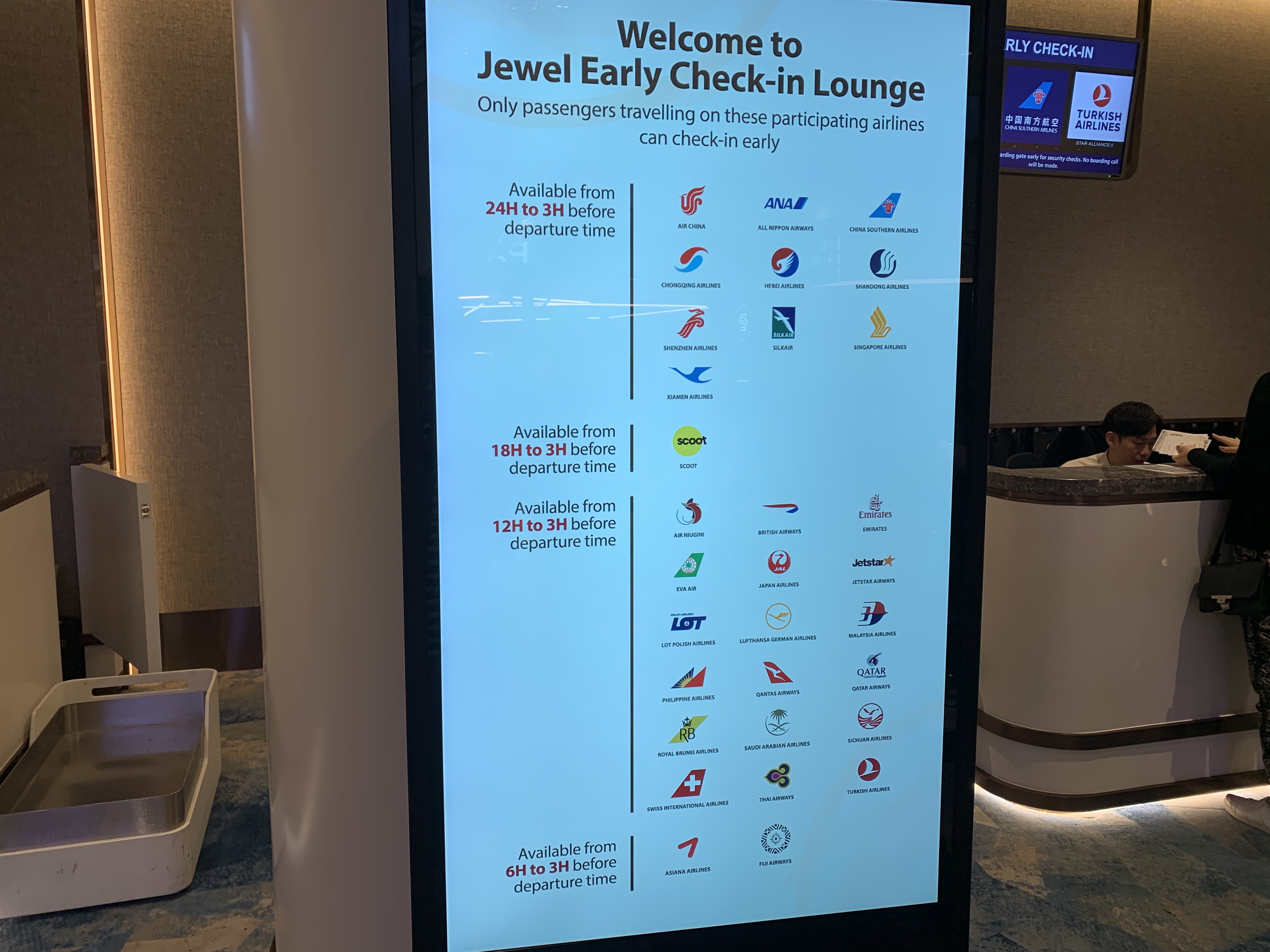 荷物を置いてジュエル内を散策できて便利です‼️シンガポール航空/ANA(24時間〜3時間前)、JAL(12時間〜3時間前)はもちろん対象内でした。