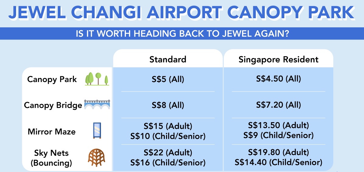 値段はそれぞれ違い、ツーリスト/シンガポール在住者で分かれています。子供とシニアは値段が安くなります。
