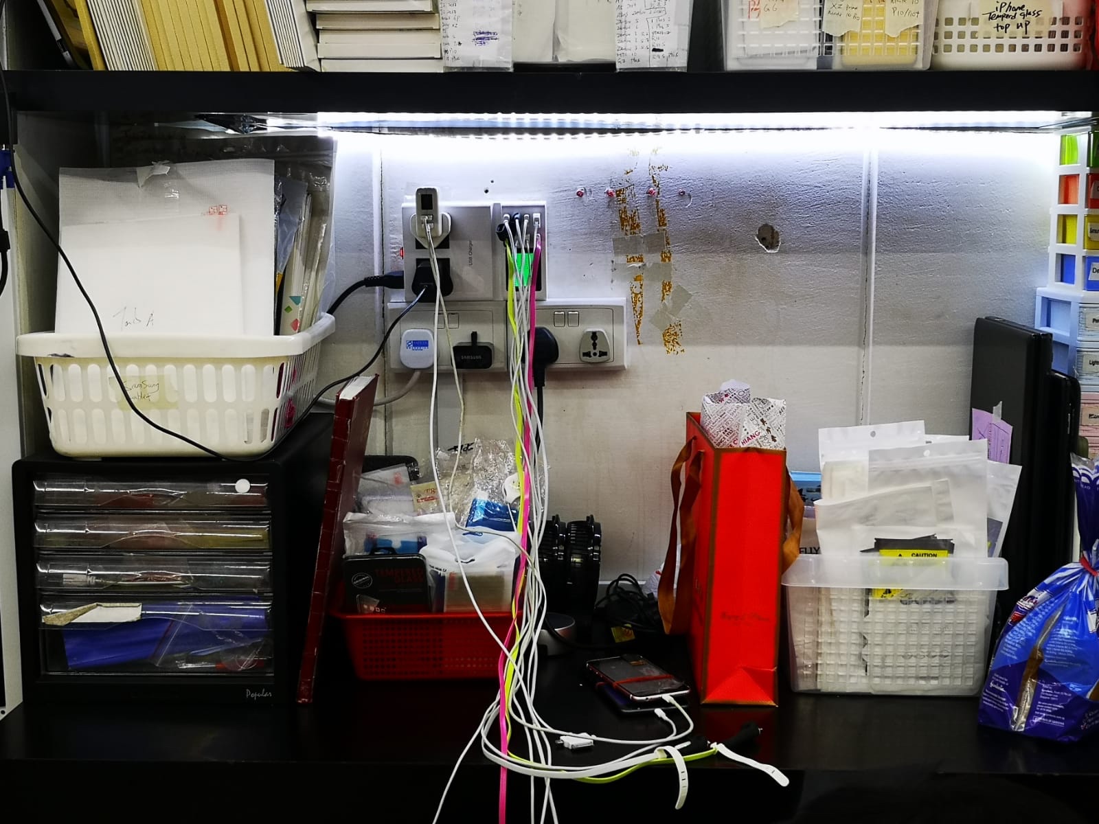 店舗の充電ソケットは一つのソケットから10個ものスマホを充電できるものが使われていました😳こういった備品もシムリムで買うことができますよー‼️