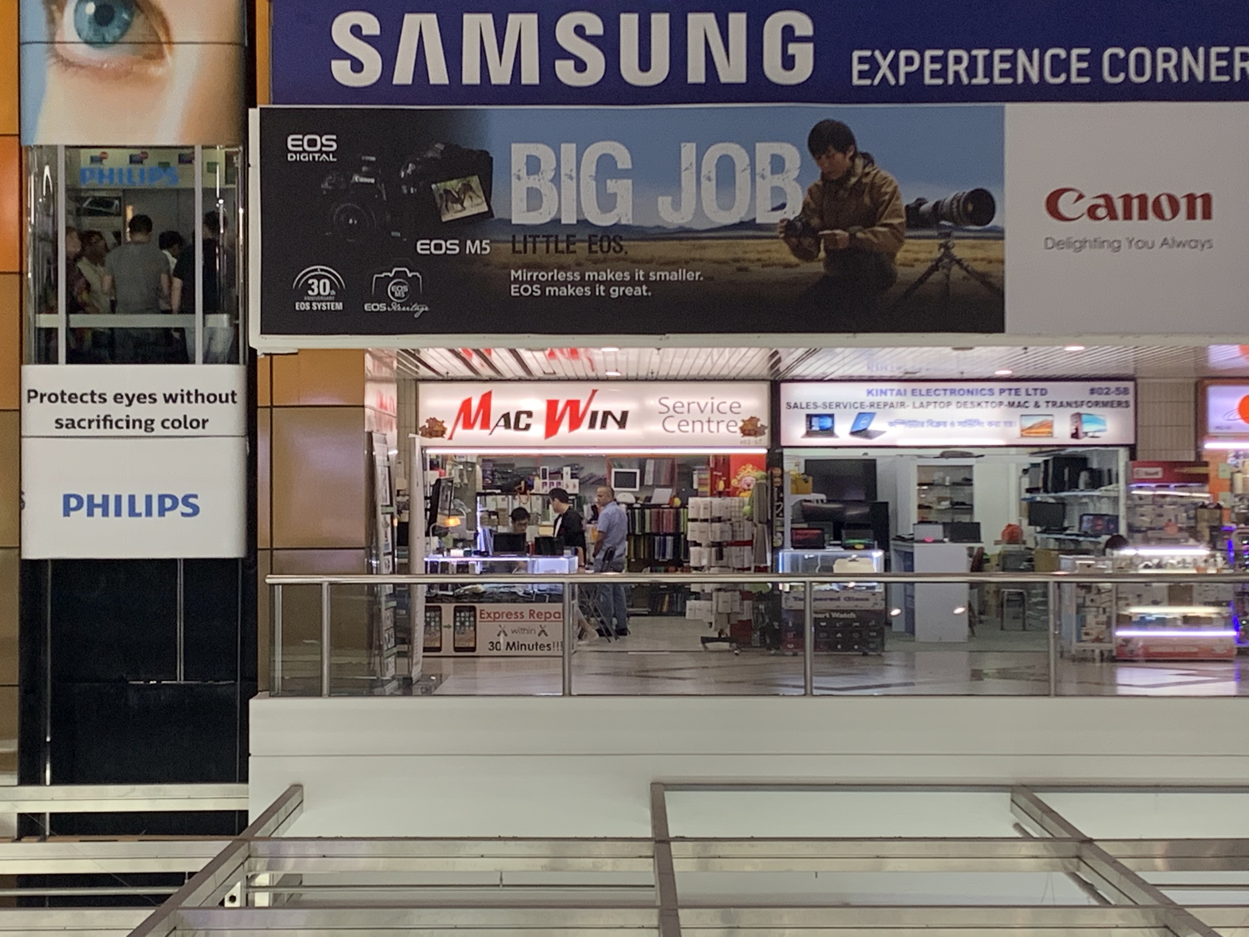 スマホの修理ならシムリムスクエア2階のMAC Winがおすすめ!MAC Winはスマホのディスプレイをシムリムスクエアにある他のいくつかのお店に卸しているお店なので、他店よりも安く提供してくれます。シムリムスクエア以外での修理だと少し高くつく傾向があります。