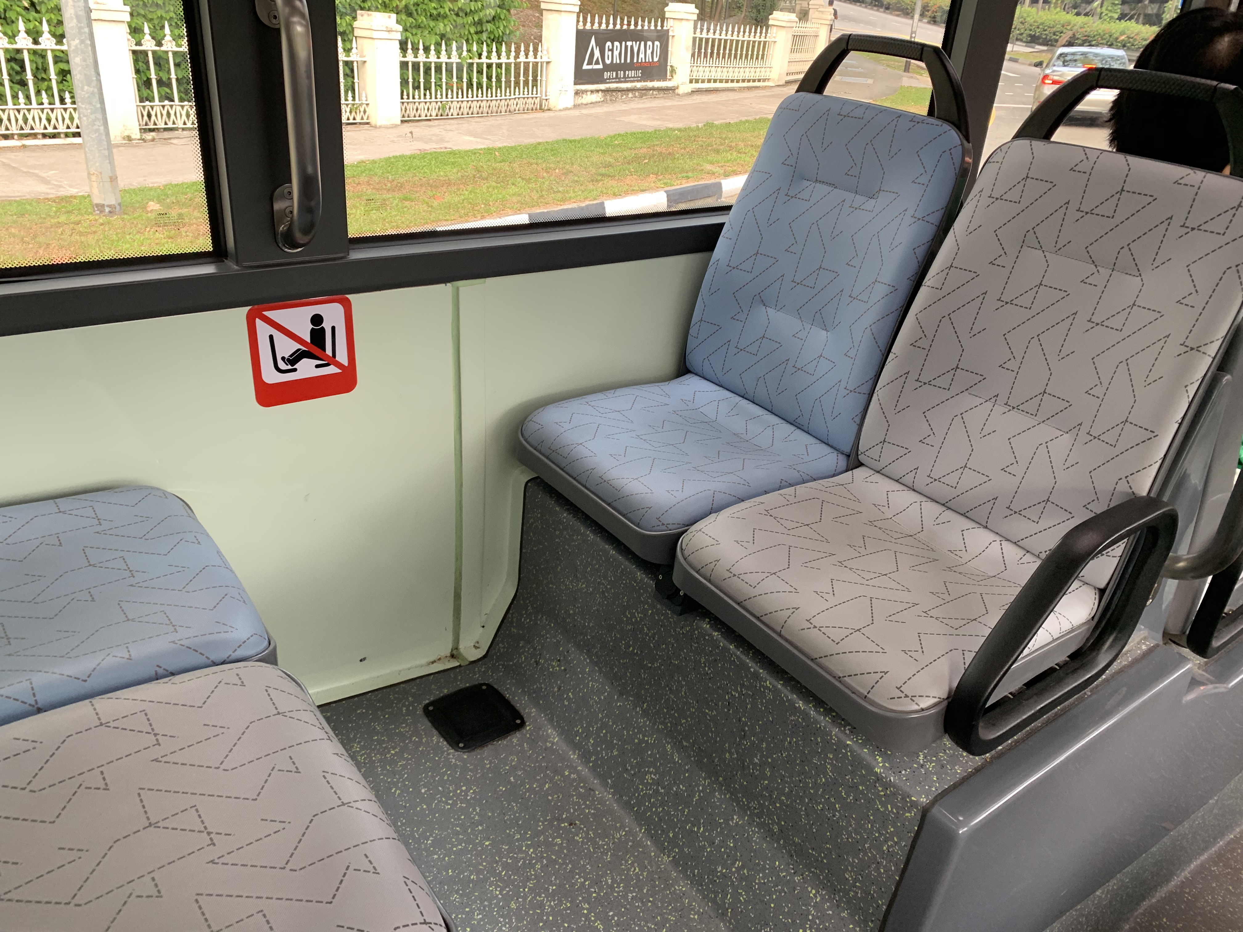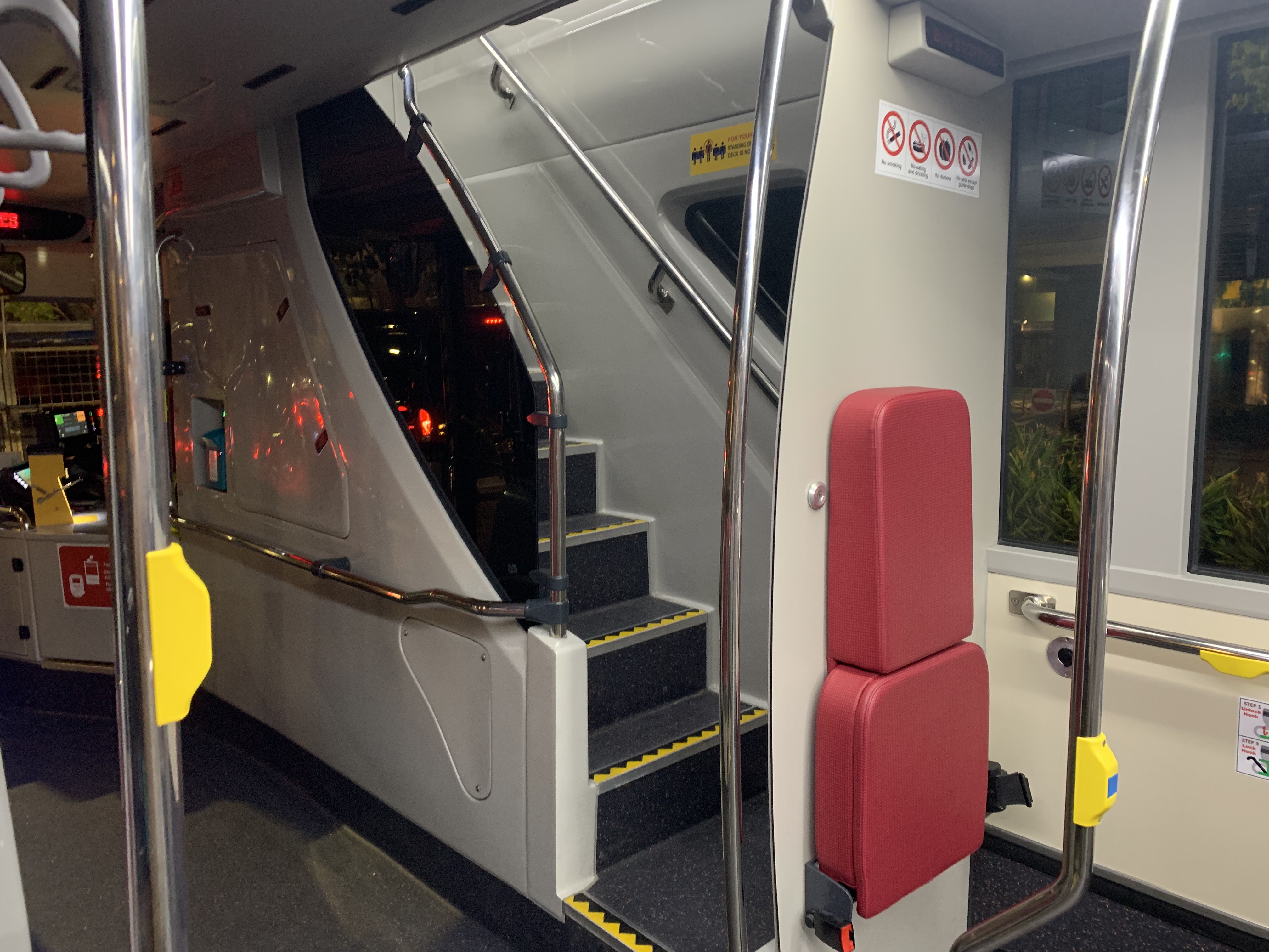 2階建てバスといえばイギリスのビッグバスを思い浮かべがちですが、シンガポールにも二階建てバスがあるんです。中は広々としていて、向かい合わせの席なんかもあります。