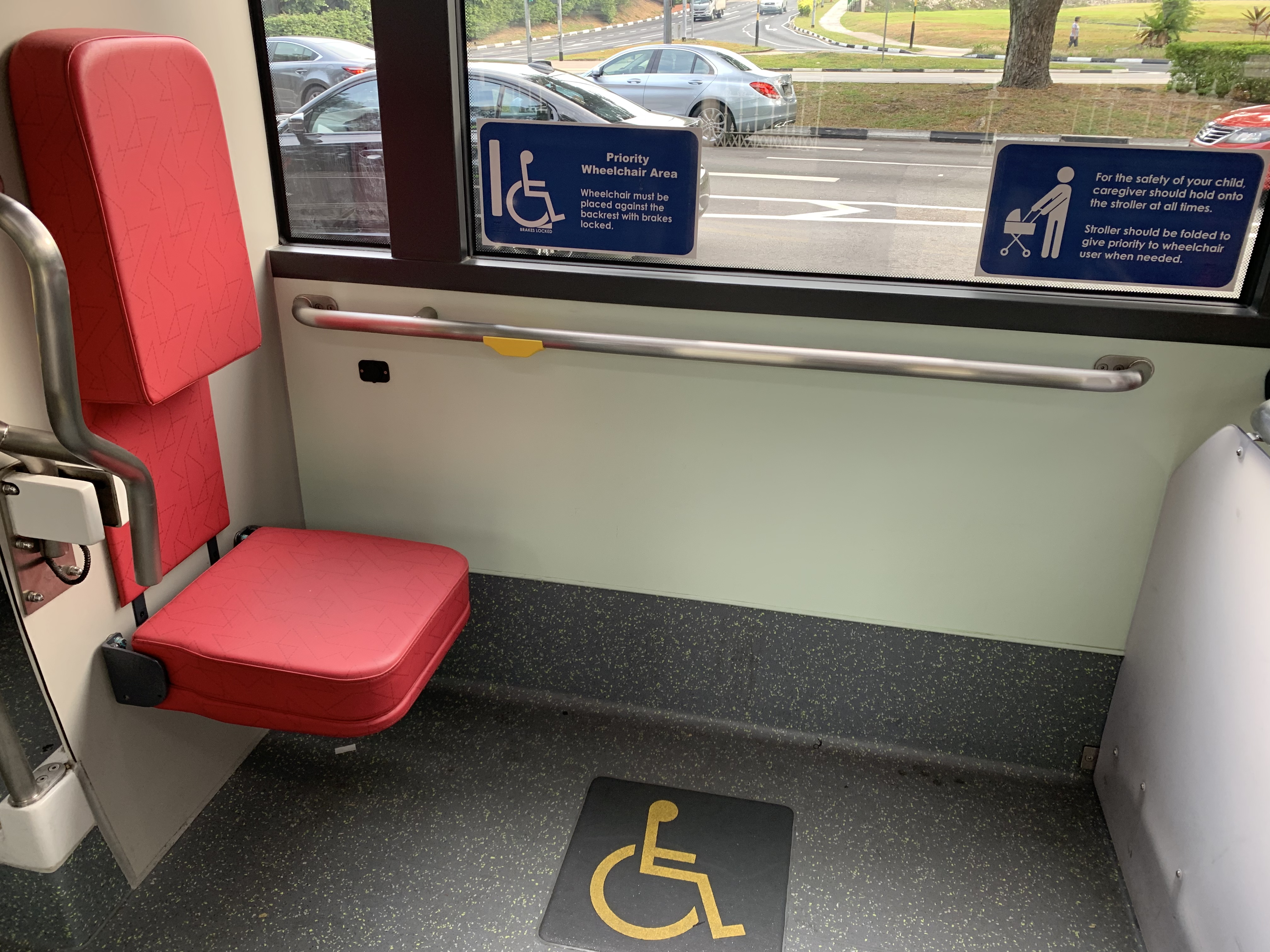 全てのバスに車椅子、ベビーカーのスペースが用意されており、ノンステップバスになっているんですよ。乗り降りに助けの必要な人がいる場合は運転手さんがヘルプをしに来てくれます。