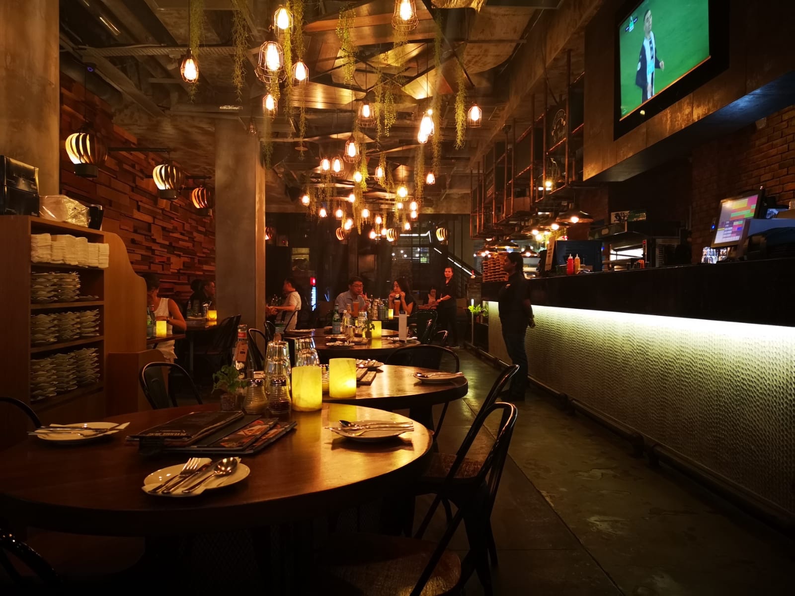 一階はちょっとハイエンドな雰囲気。普段使いというよりかは誕生日などで利用する人が多いようで、この日もバースデーソングが店内に響き渡り、ケーキが運び込まれてきました。スポーツが放映されています。