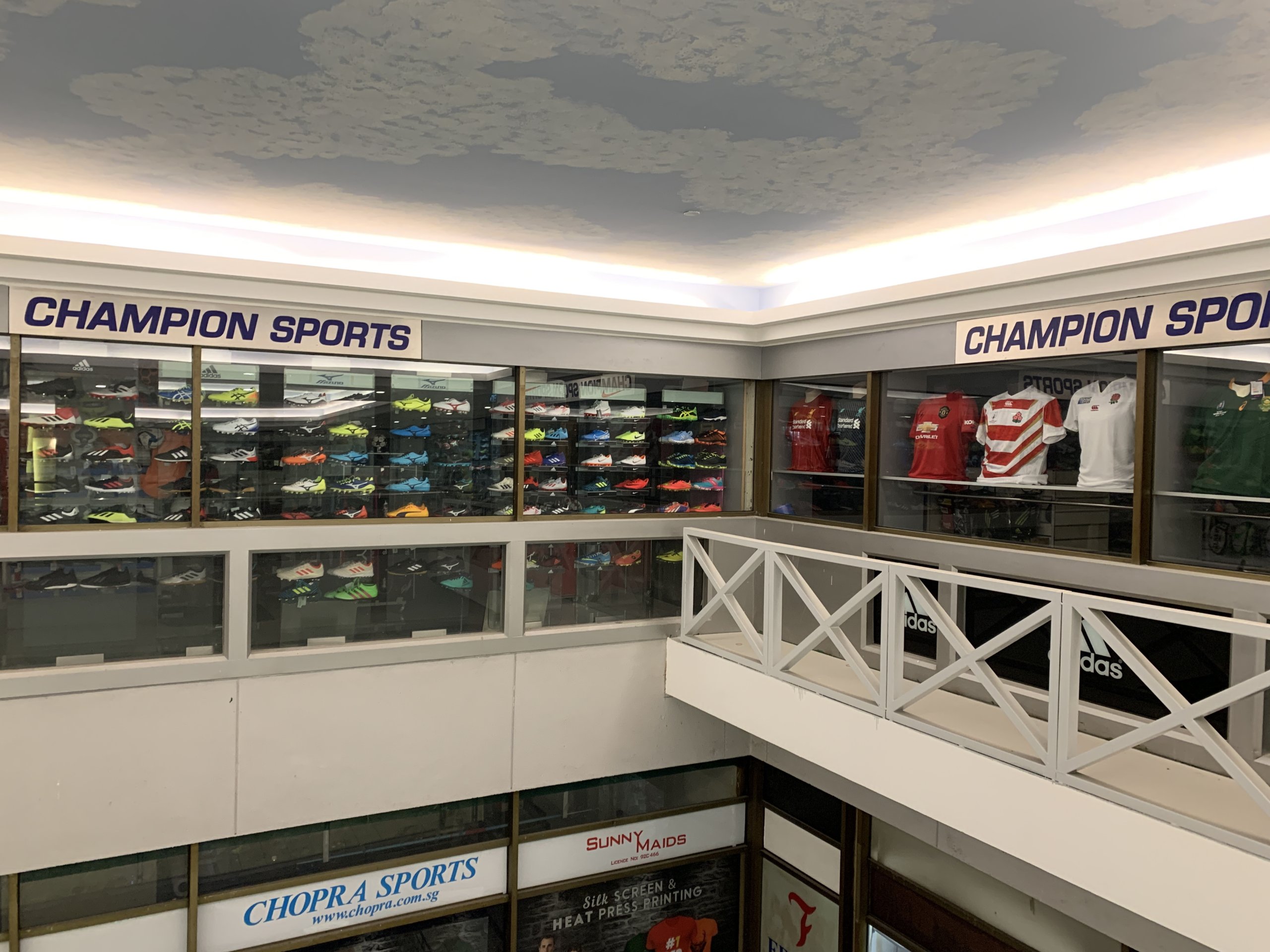 シンガポールで有名なサッカーメインのスポーツ用品店です。こちらのテナントでは型落ちモデルが売られています。フットサルシューズよりもスパイク、ユニフォーム、ボールがメインです。