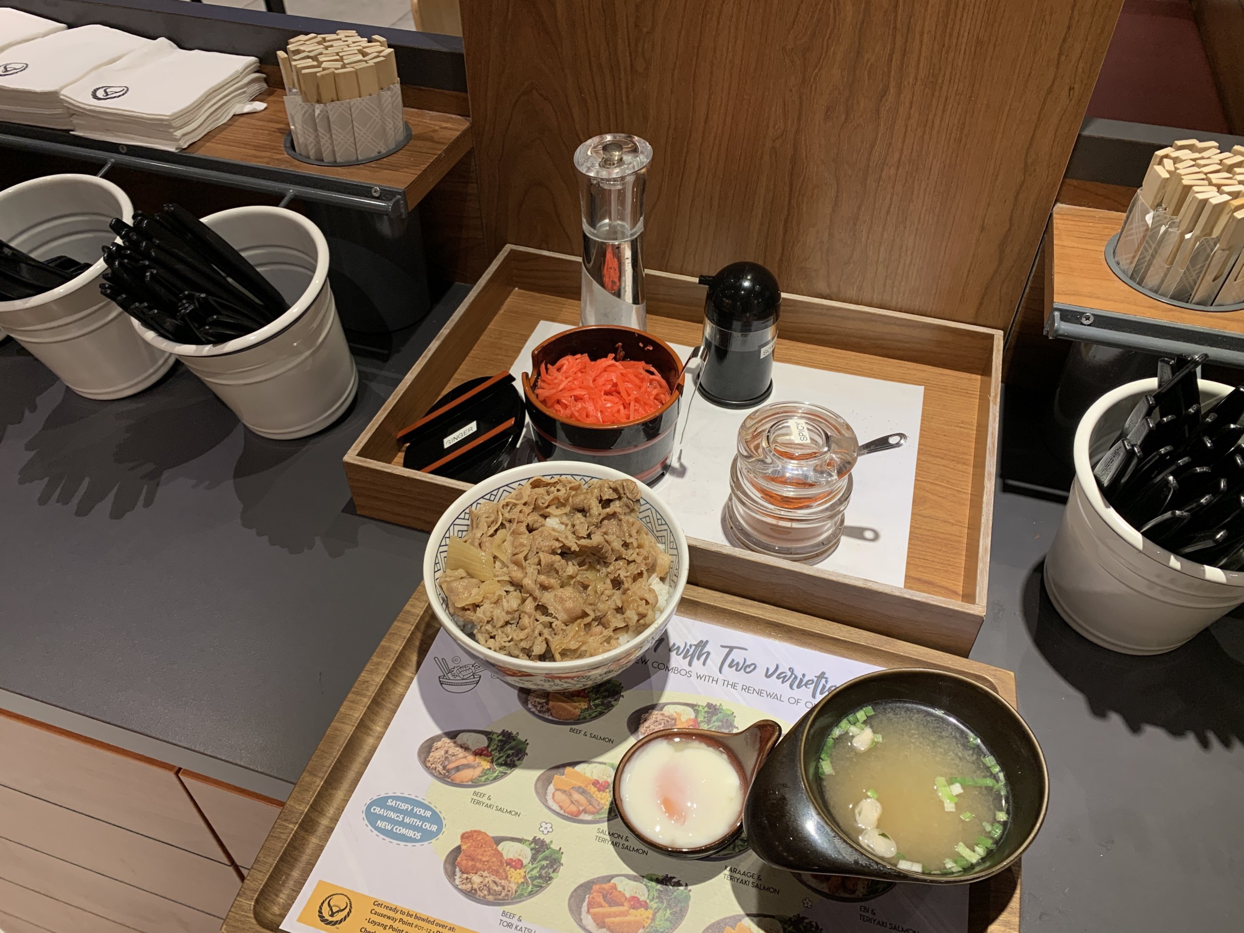 まずは客席がカフェの様な作りになっていて、ちょっとおしゃれで居心地良くなっています。日本の吉野家だとカウンターが並んでいるだけのことが多く、大抵が男性客で埋まっていますが、これなら女性客も1人で立ち寄れそうです。