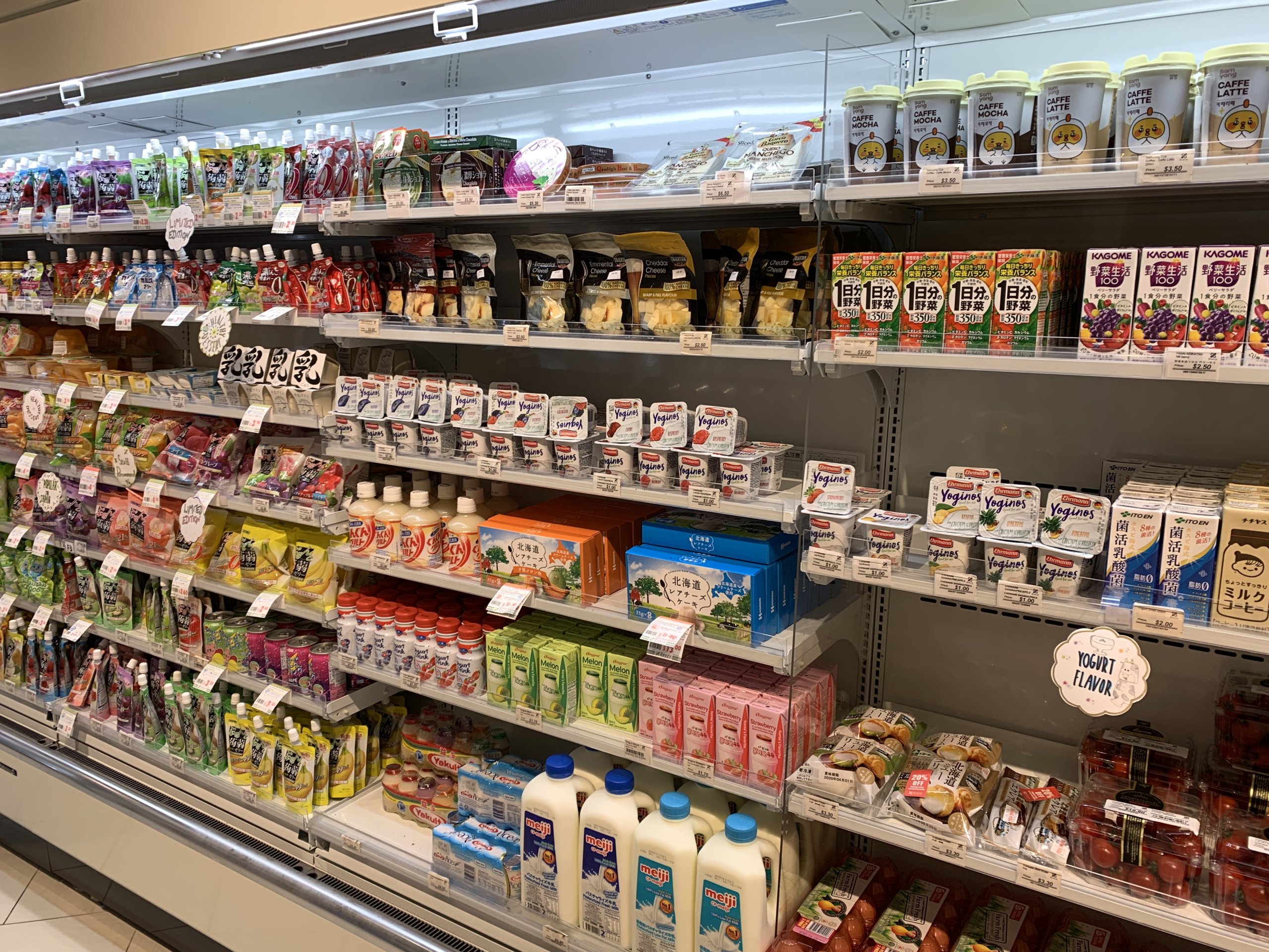 野菜ジュースやヨーグルト、が並べられているこのショーケース型の冷蔵庫は日本では普通ですが、シンガポールではなかなか見かけません。