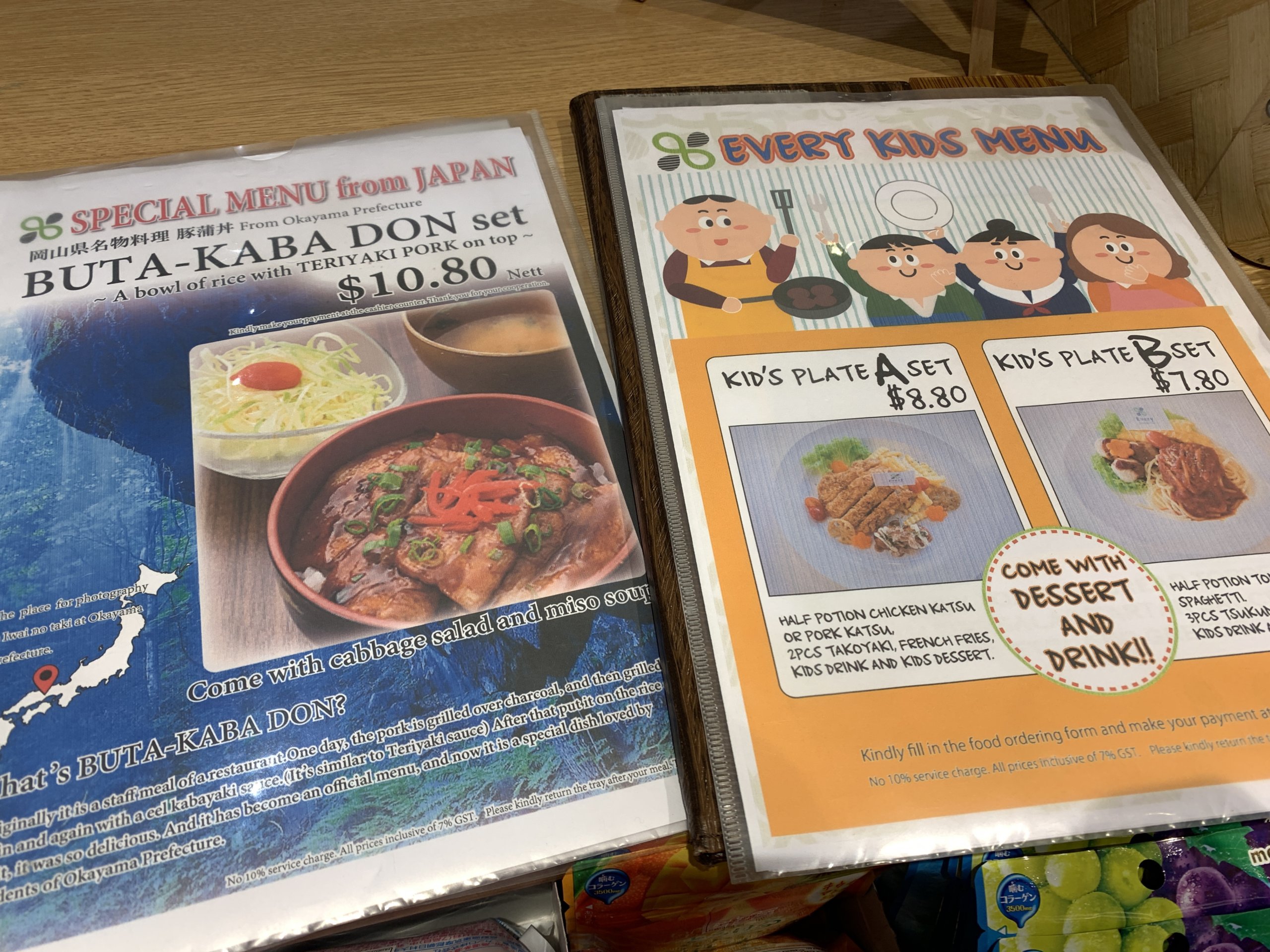 お子様セットなども置いてあります。ご飯メニューは比較的低単価で、$10前後で食べることができます。