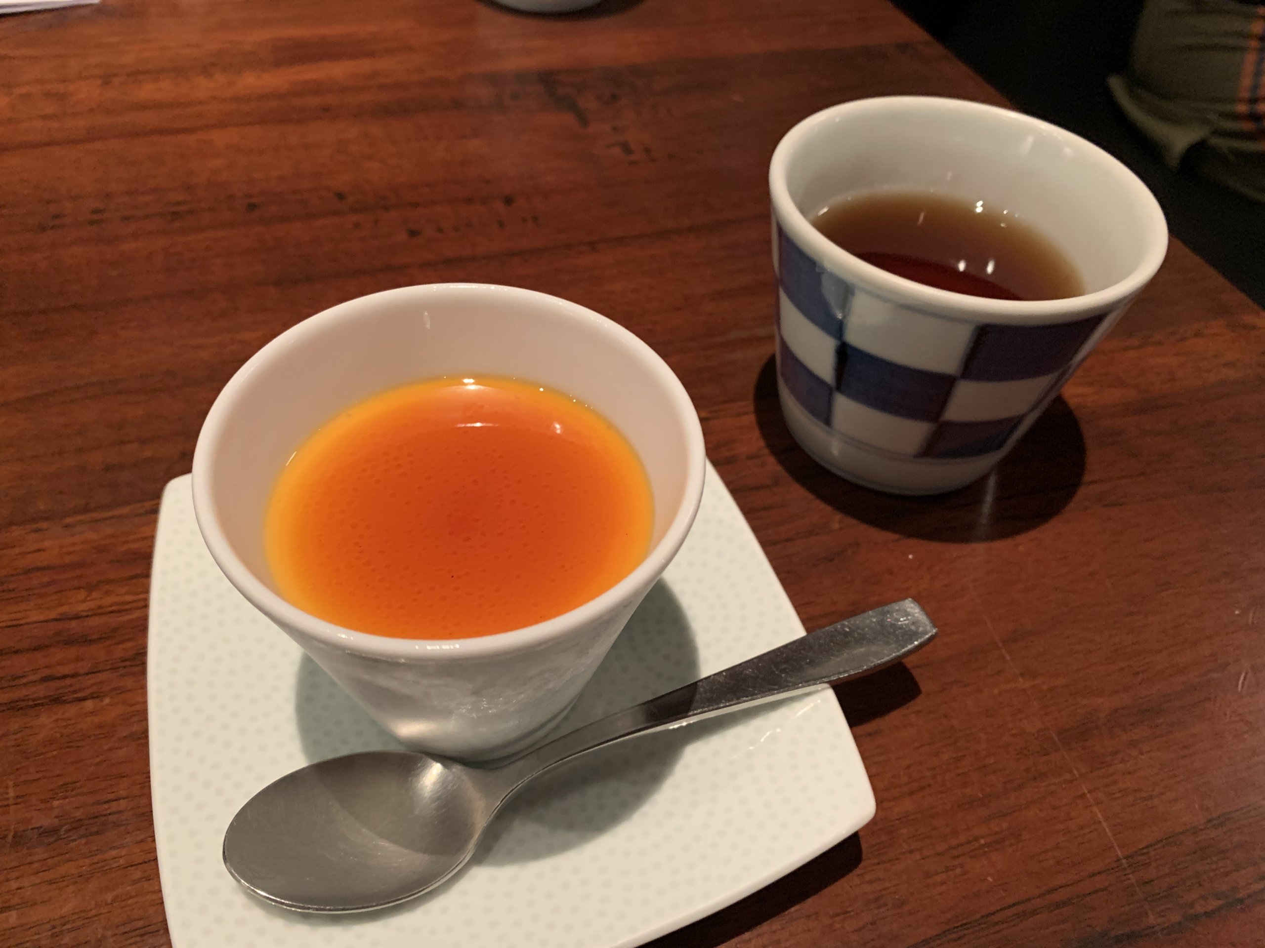 じつはメニューの下にミニデザート付きと表記されています。何が来るのかな?と楽しみにしていると酢重プリンが登場‼️