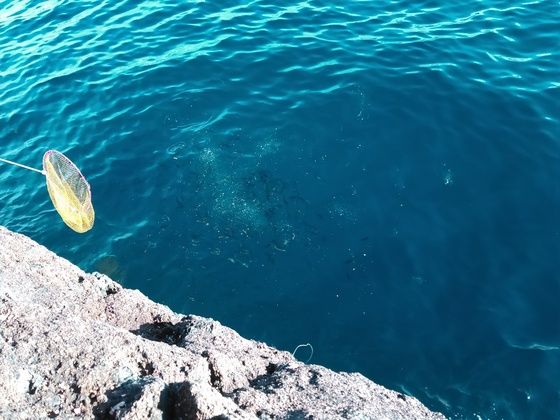ここに2人であがり、釣り開始しますが手前は20cm程の鯵、沖はタカ
