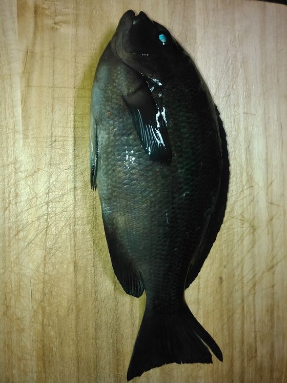 唯一、竿を出せる場所で釣っていた仲間が40cm程のクロを釣り上げます。