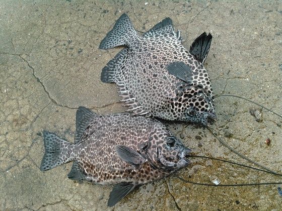 またもや・・・ 8月30日(日)いつもの波止に行って来ました 雨予報の為、人もパラパラ カッパの下を履き、パラソルを立てて雨に備えます 準備を済ませ釣り開始です まだ上げ潮が走ってます 今年はこの潮がいいんです 潮が変わらぬうちにと棚を探ります するとすぐにアタリが 小ガキですが2枚立て続けに釣れ「このまま行けばこのサイズなら何枚釣れるかな?」と思いながら手返ししますが、2回連続すっぽ抜け その後、下げ潮に変わりアタリが途絶えます そのままアタリなしのままPM2:00の干潮を向かえ上げ潮に変わるのを待ちますが、これまた潮が変わらない・・・・ 諦めて今日は帰る事にしました 上げ潮が走るとまた喰う気がしたんだけど残念です また週末行ってきます 今回の釣果 小ガキ2枚