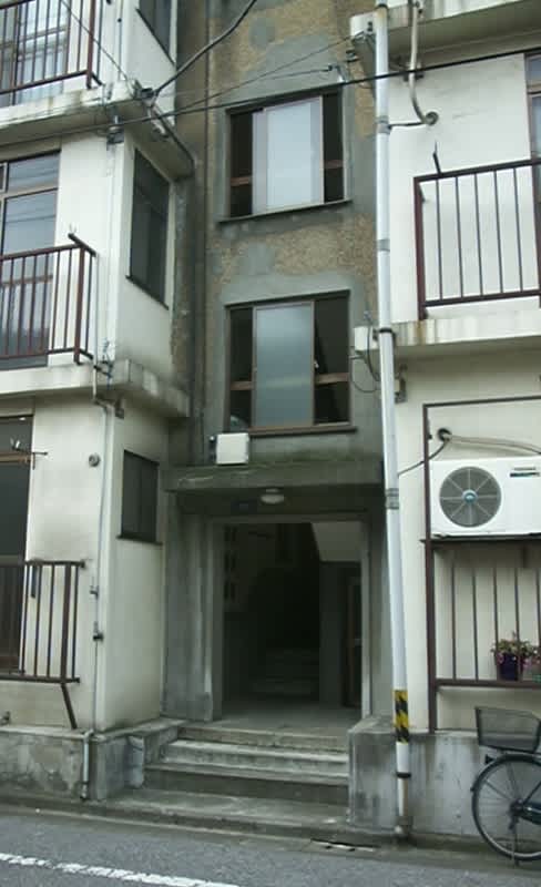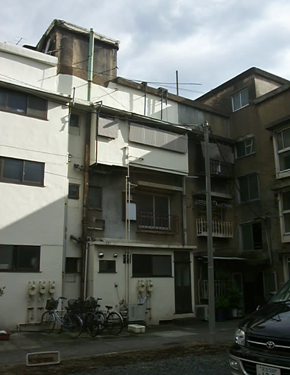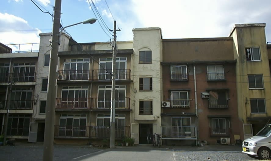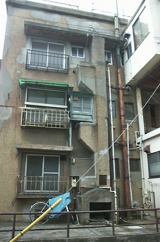 6号館は清州橋通り沿いにあった5号館の裏手にあった。写真は清州橋通りの南の裏通りから見た6号館の北翼。6号館の平面は匚型の両端を折り曲げたロの字型に近い形で、割と広い中庭を持つのが特徴だった。写真で見る北翼は清砂通りアパートメントの外観の特徴が見られない。6号館は道路から少し離して建てられていたので、その隙間に増築した個所があり、上の写真も増築で元の表面が隠された状態を見ているのかもしれない。