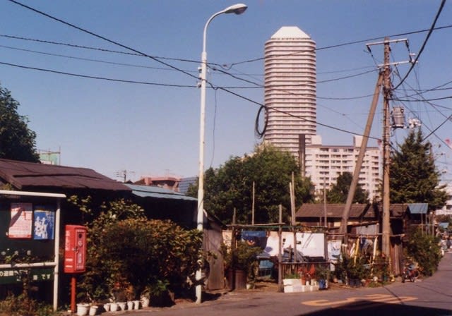 佃堀河岸の網干場。中央区佃1-8。1989(平成1)年10月29日