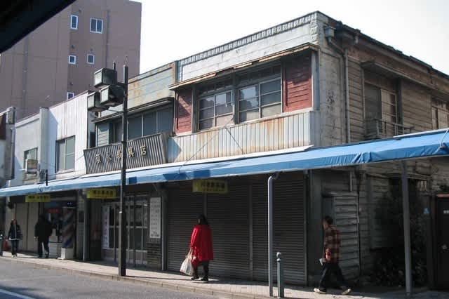 サンロード商店街と柴又街道との交差点が「南小岩八丁目」交差点。写真はそこから小岩駅の方へちょっと入ったところ。白い壁の二軒長屋の1軒に「理容セキモト」、その右に看板建築が2棟、「須永表具店」と「川宗園茶舗」。こられ3棟は戦前の建物である。あるいは須永表具店と川宗園とは同じ長屋式の建物かもしれない。川宗園の横は白塗りの下見板で、なんとなく洋風だ。