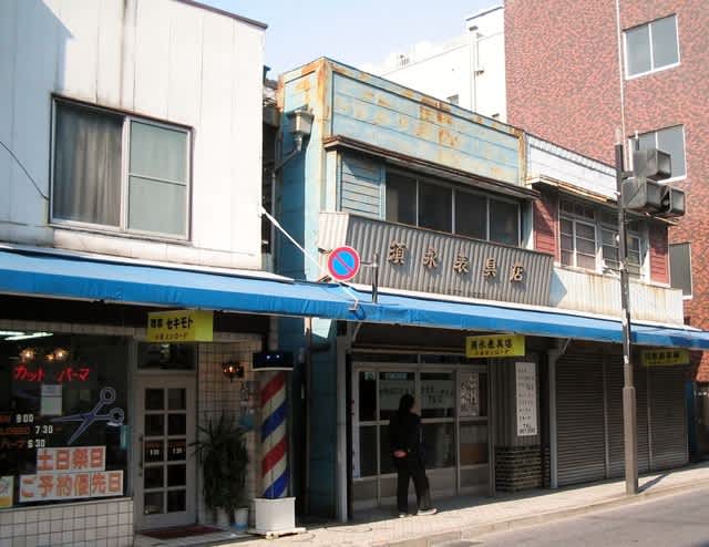 理容セキモト、須永表具店。江戸川区南小岩8-18。2005(平成17)年3月15日