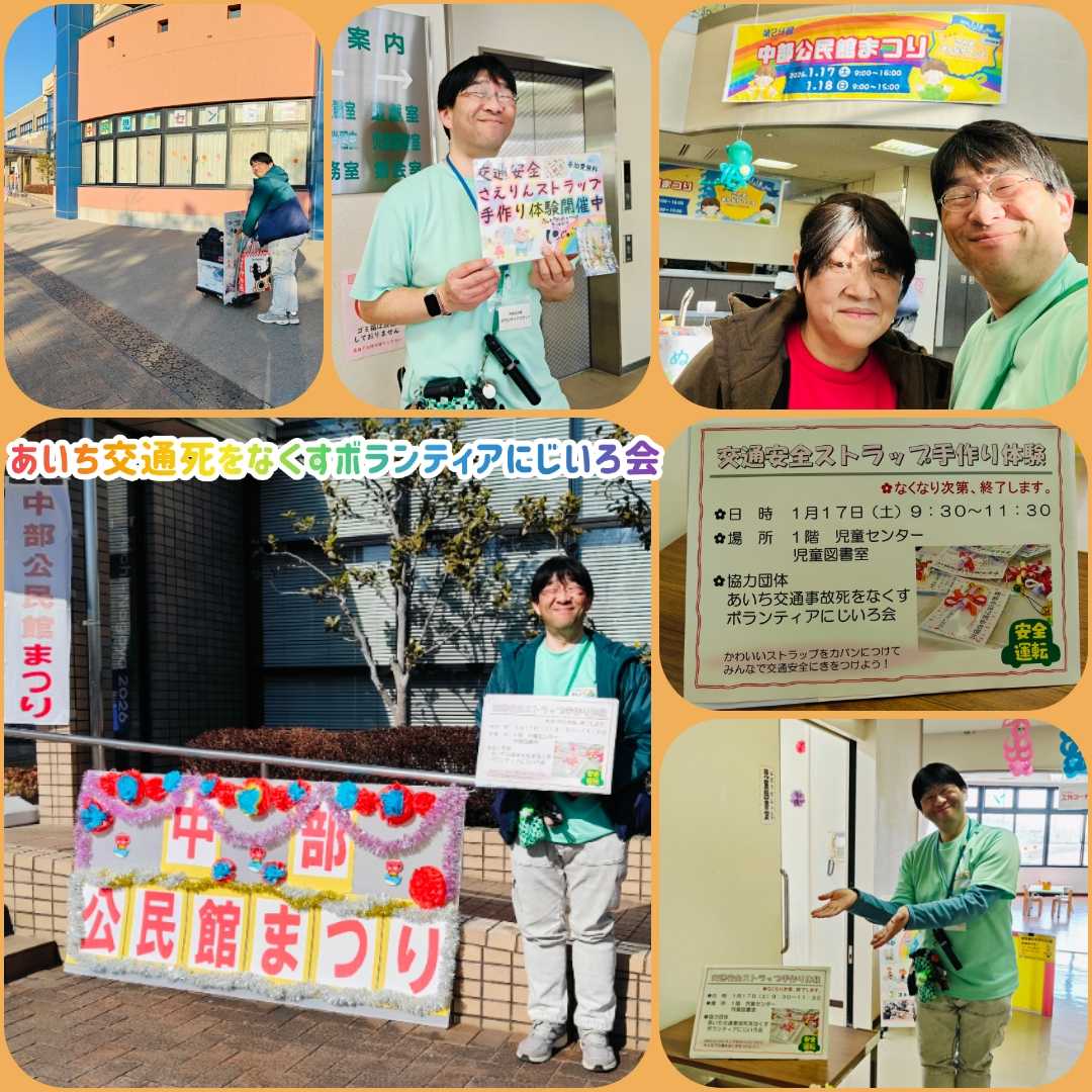 昨日は安城市の中部公民館の公民館まつりで初めてストラップ手作り体験をさせていただきました。というのは昨年末に担当者の女性の方がSNSでのにじいろ会の発信を見てホームページで調べてくれて安城ボランティアセンター経由で連絡をいただいたからです。一度打ち合わせに伺うと「ぜひ交通安全の啓発でストラップ作りをお願いします!!」と依頼されて今回の初参加に至ったのです。