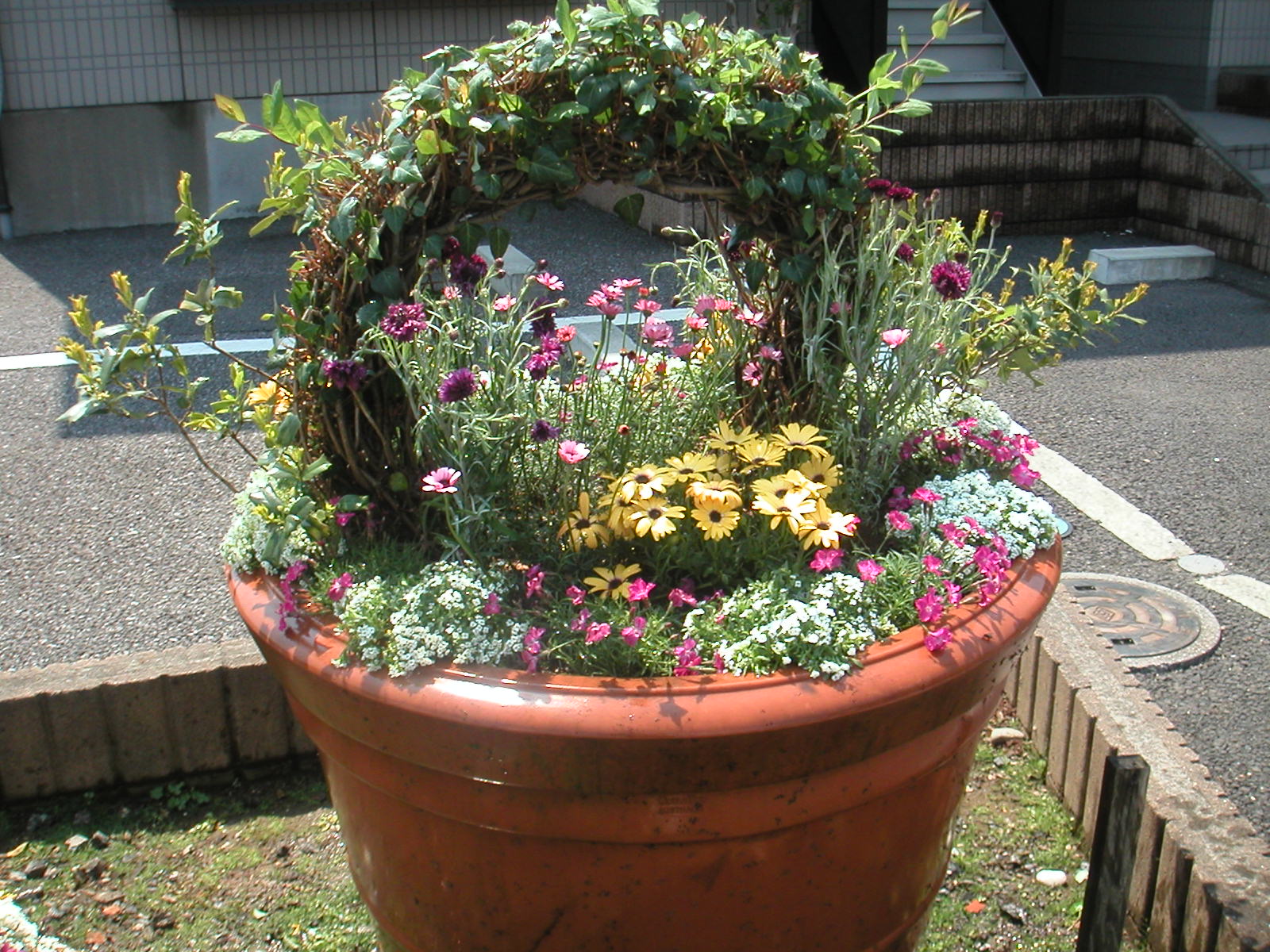 いい天気 久しぶりに暖かい日でうれしい~です。ウチの会社のお隣にアパートがあり、そこの寄植えをグリーンメイトさんたちが作ってくれています。今日植え込んでいたのでパチリ春・春・春 っていいですね~ところで、もうすぐゴールデンウィークですよ皆さんはどこかに遊びにいきますか?私は地元のお友達たち数十人で、毎年恒例のバーベキュー何歳になっても、昔の友達って楽しいですね。子供たちも大きくなり上は大学生~下は幼稚園まで・・・さて私は何歳でしょうそれは、やっぱりナイショです。バーベキューの写真も撮ってきますね。お楽しみに