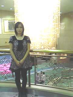 この写真は明治記念館の中の巨大なシャンデリアの前でパチリ