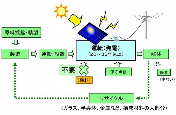 「現在環境負荷が少ない再生可能エネルギーの中で、最も現実的な選択肢として見られているのは、太陽電池による太陽光発電だ。ここでは太陽光発電の金銭的なコストではなく、発電施設としてのライフサイクルの中で、どれぐらい環境負荷があるのかに注目してみたい。」