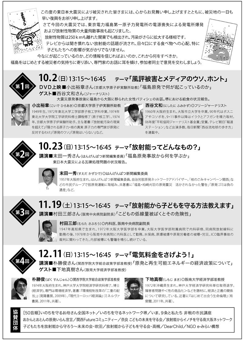 ■費用 資料代:500円、避難者および大学生以下は無料(各回とも)