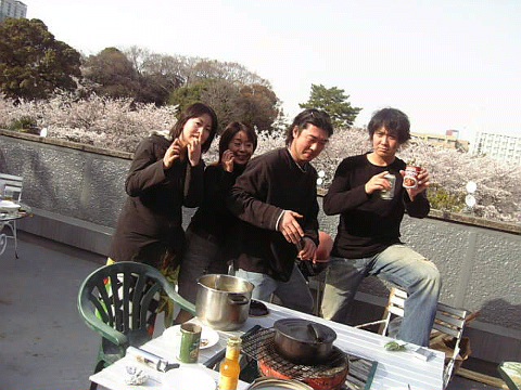 忙しいと言いながら花見しました。すみません!あんまり天気がよかったので、つい・・・本当は次の日にする予定だったんだけど雨の予報だったから一日繰り上げた、そのせいで集まりが良くなかったけど、反ってゆっくり話しが出来てすごく充実したな。早く来てくれた三人です☆