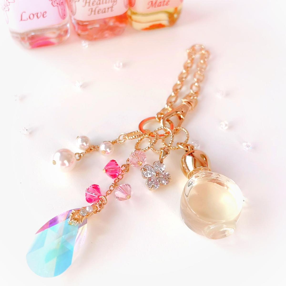 バッグにつけて、おしゃれにメモリーオイルを持ち歩くことができます。