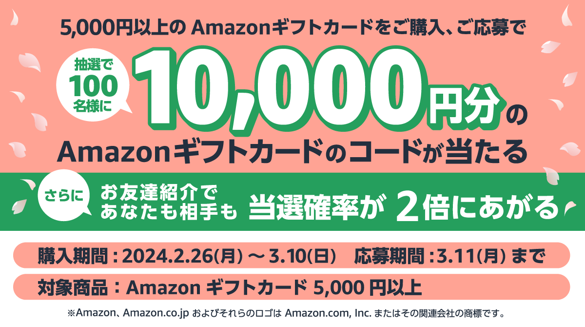 抽選でAmazonギフトカードのコード 10,000円分を100名様にプレゼント!