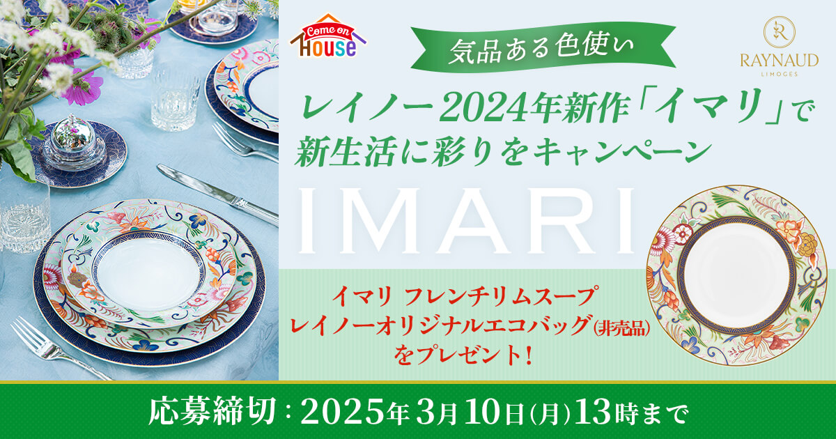 気品ある色使い レイノー2024年新作「イマリ」で新生活に彩りをキャンペーン | アクティビティパーク | Come on House(カモンハウス)気品ある色使い レイノー2024年新作「イマリ」で新生活に彩りをキャンペーン キャンペーンのご応募はこちらからcomeon-house.jp