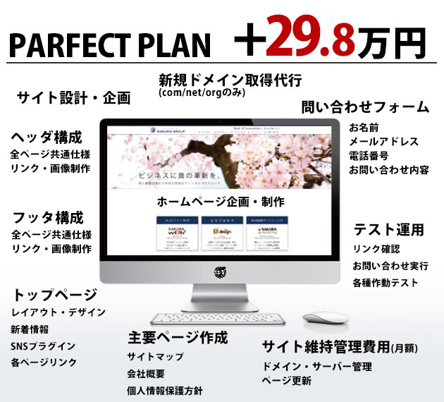 パーフェクトプランはデザインプランにホームページ制作がセットになった超お得プラン!