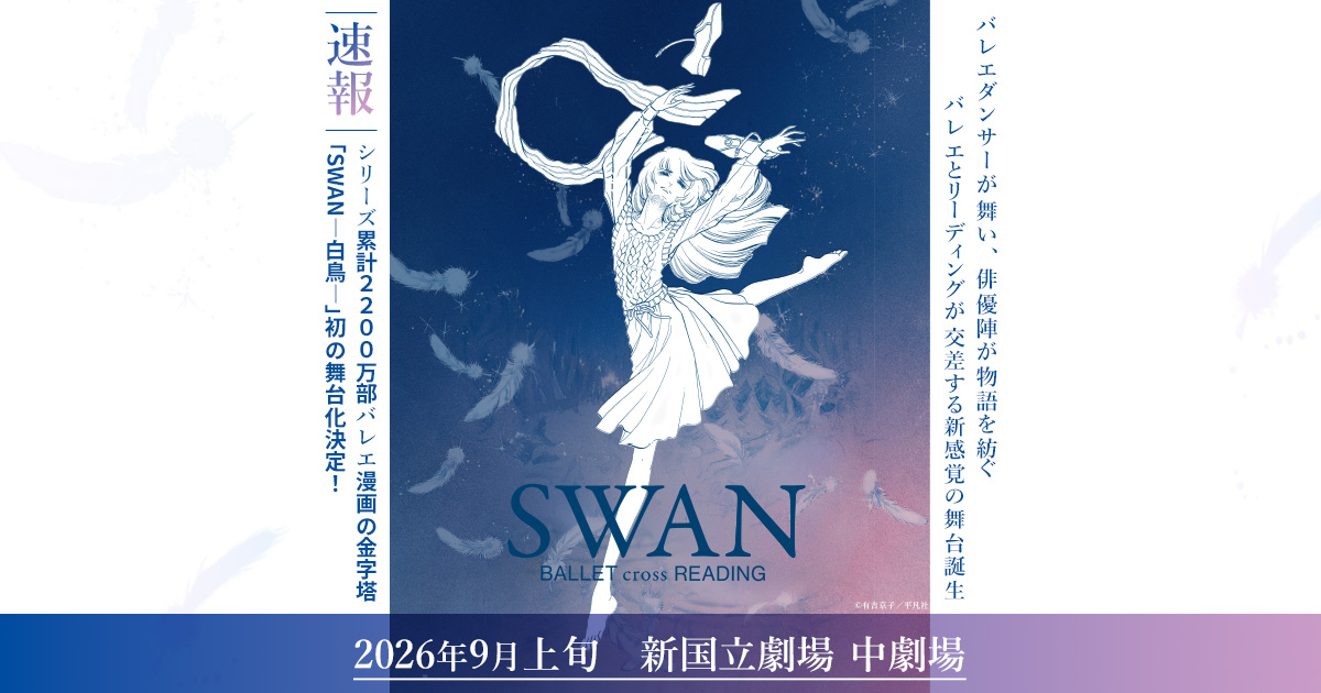 こちらは驚き企画でした。有吉京子さんの「SWAN」がバレエに! というか、リーディング公演なので、お話のあいまにバレエシーンがはさまれる、タイプの舞台になるのでしょうか。ゆりたかコンビも出ていた「Jewels Story」のスタイルの大規模版かも。日テレ製作で、バレエ監修・振付は福田圭吾さんです。新国からは木村優里・柴山紗帆・米沢唯・中島瑞生・渡邊峻郁の名前が。日程は9月上旬とのみ、バレエ部分はトリプルかダブルキャストとのこと。
