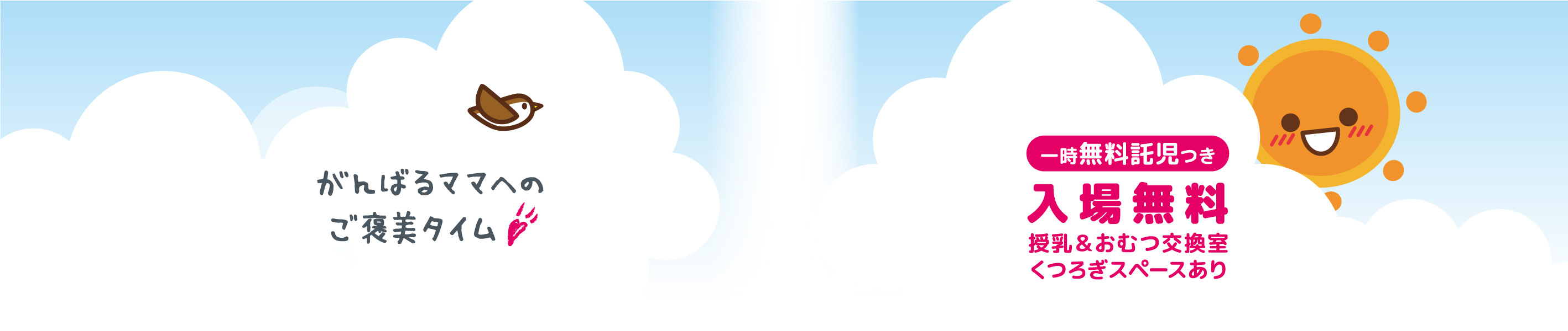 ※一無料託児付き、授乳室、オムツ交換室、くつろぎスペース、駐車場あり