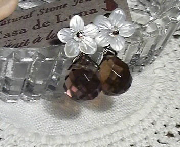 シェルとスモーキークォーツのピアス