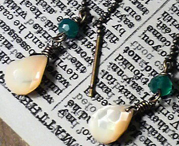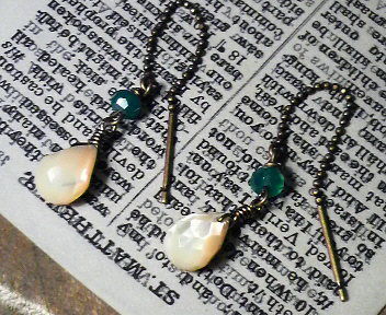 マザーオブパールとグリーンオニキスのボールチェーンピアス