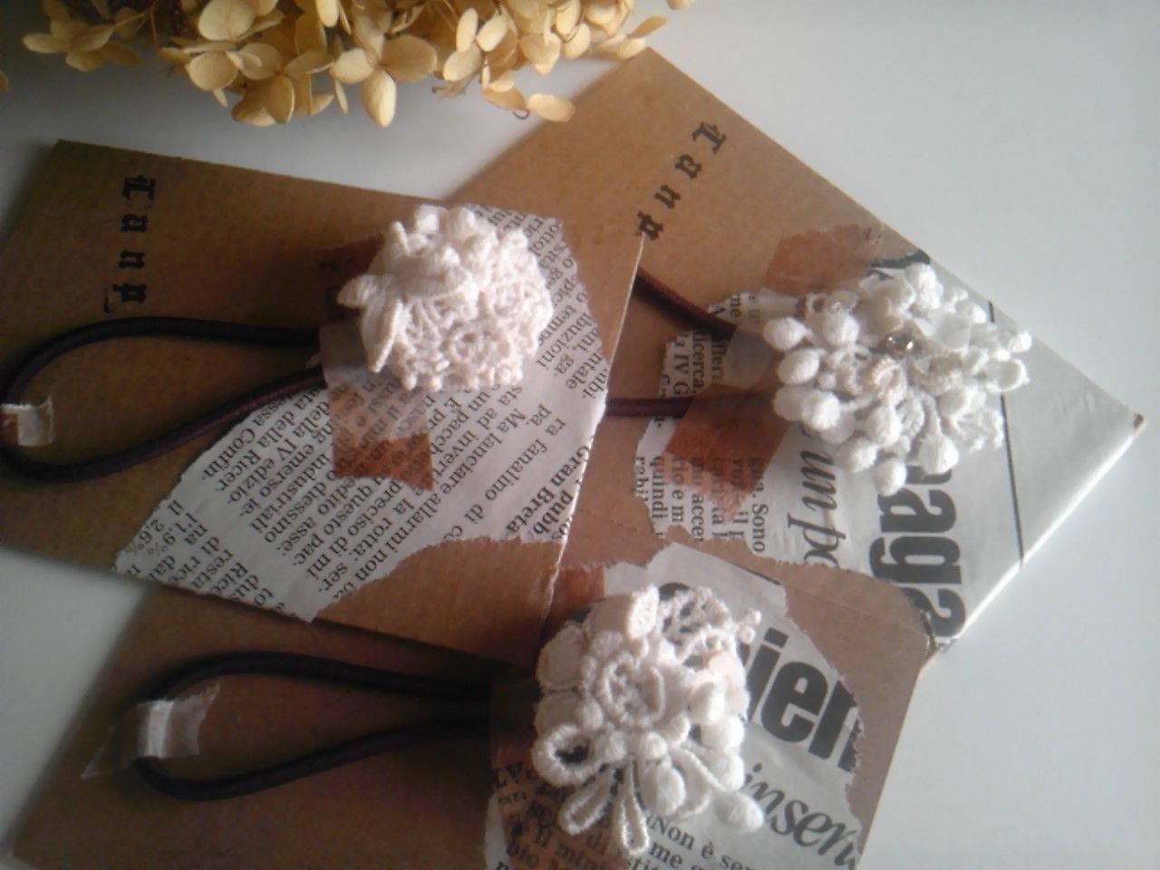 くるみボタンにレースをコラージュしたヘアゴムが3種類☆