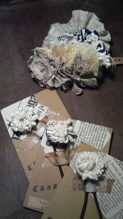 Lanpさんの布やレースを使用したヘアアクセサリーです