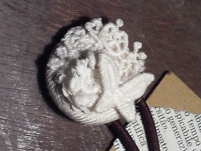 まずはマリンなデニムストライプのくるみボタンにお花のレースいろいろ