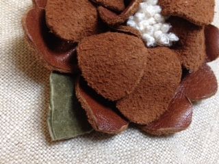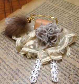 とってもボリューミーなシュシュは、ふんわりな麻生地にレース、リネン、革、ミンクファーなどをコラージュ