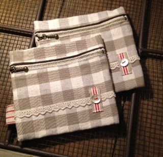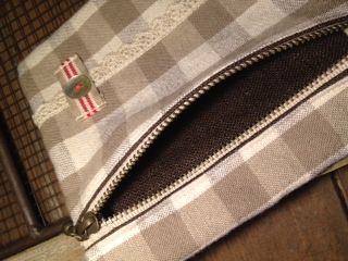 グレージュ色ギンガムの可愛らしいファスナーポーチです