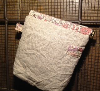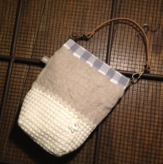 こちらはウォッシャブルリネンにワッフル生地のハンドルつきのバネポーチ