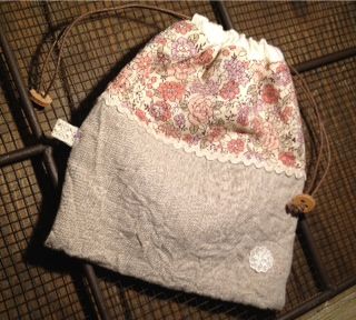ウォッシャブルリネンと小花の巾着