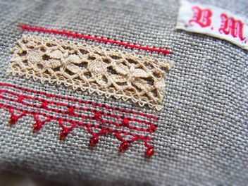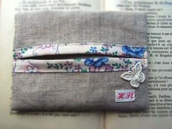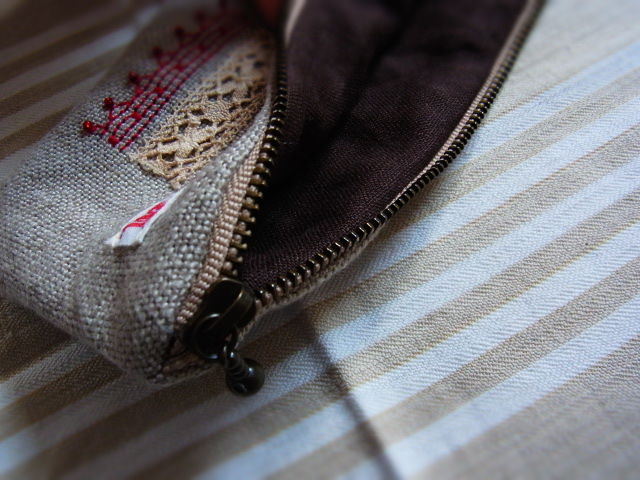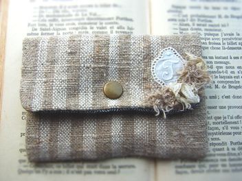 ヴィンテージチェコリネンにアンティークレースをあしらったカードケースです