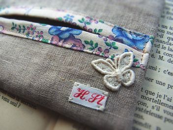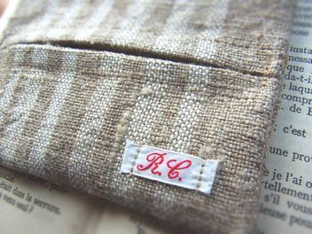 こちらはカードケースとお揃いの生地に、アンティークイニシャルテープのワンポイント