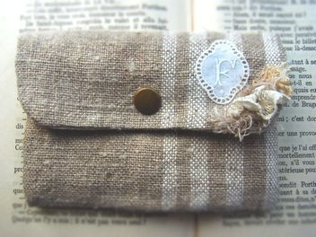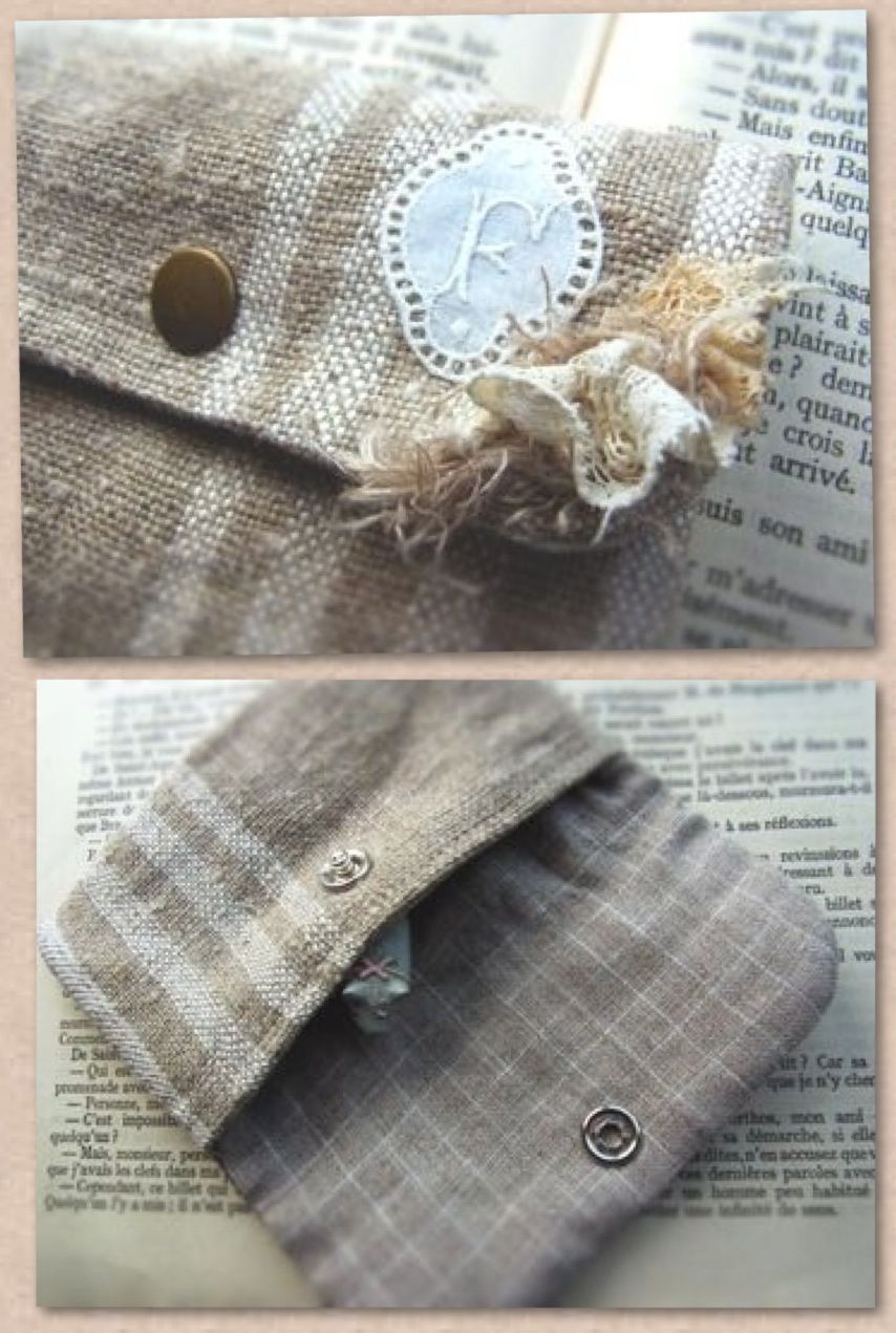 ヴィンテージリネンとアンティークイニシャルのカードケース