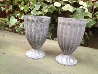 腐食した風合いに加工されたブリキ高台カップです