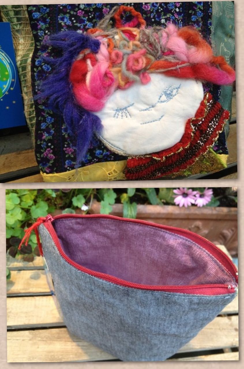 デッドストック生地パッチワークめんこちゃん台形ポーチ