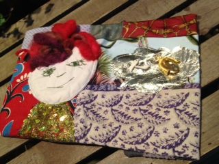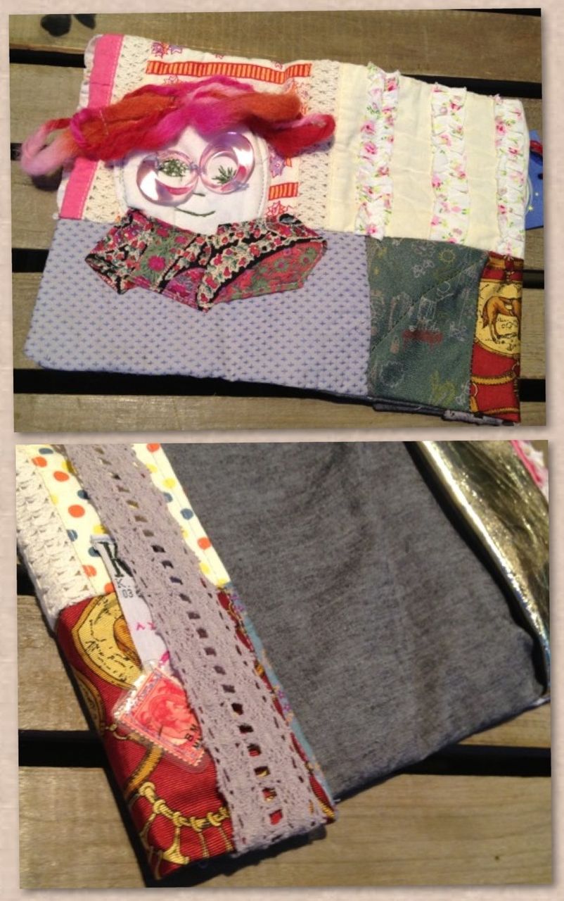 ピンクのメガネに合わせてピンク系のいろいろなお花柄生地をパッチワーク