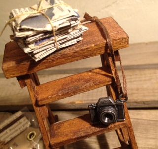 ブラウンの脚立にはレトロなカメラ