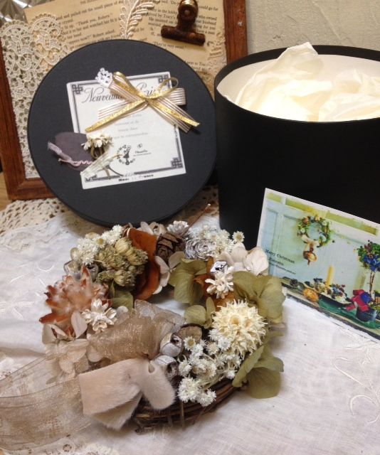 ギフトボックスもレースやおリボン、ドライフラワーをコラージュした素敵なのを作ってくださいました♪